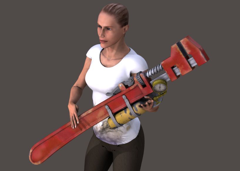 I'm trying to keep this set simple, but there are ten individual texture maps on that wrench ...not including the reflection map! I could combine some maps and collapse some of the materials zones, but there is a fair amount of work involved in doing that and it makes more sense to move on to the next.