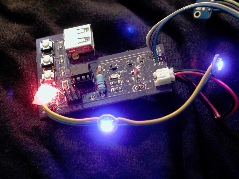 Another experiment from today was to try an array of surface-mount LEDs to see if I could solder WS2812's directly to the circuit board and save on expense and assembly time of Neopixels. Unfortunately, no. Two planes of surface-mount LEDs cast a nasty boundary shadow that four discrete LEDs manage to erase. And I haven't been able to dream up economical ways of either pointing circuit boards in four directions or encasing the circuit board in a primary diffusor/scattering lens.
